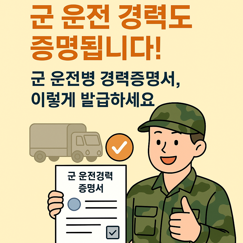 군 복무는 끝났지만, 그 경력은 사회에서도 큰 자산이 될 수 있습니다. 군 운전 경력 증명서를 미리 준비해 두면 특히 도움되실 분들! 꼭 발급받아 두세요.